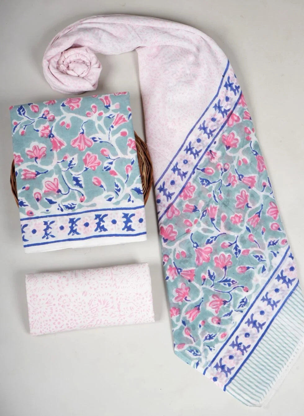 Bagru Grace – Handblock Cotton Suit Set with Malmal Dupatta
