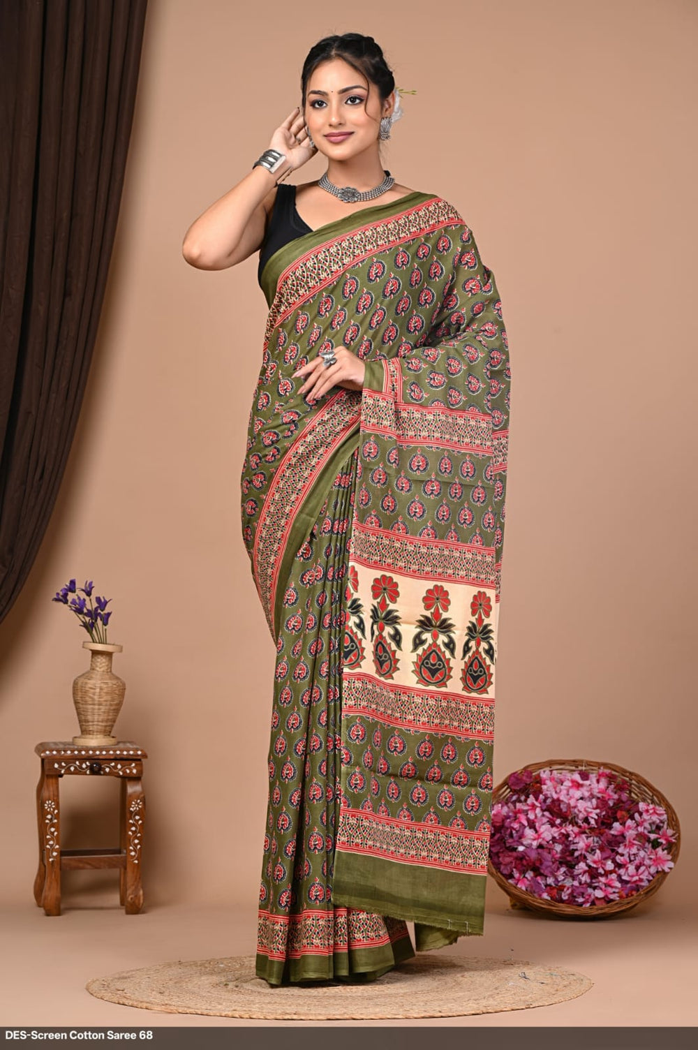 Upgrade your wardrobe with this elegant Cotton Mulmul Printed Saree 🌸