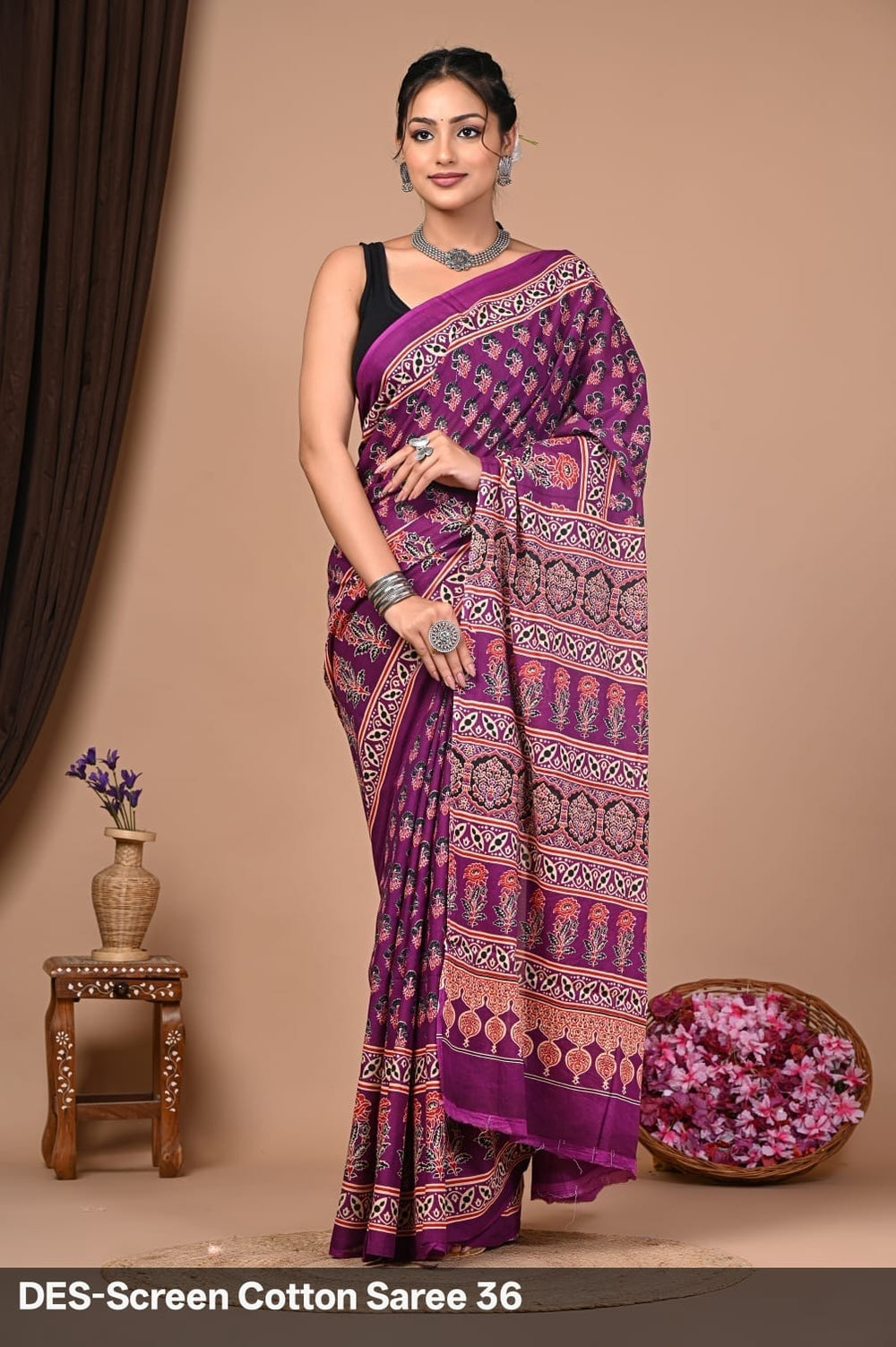 Upgrade your wardrobe with this elegant Cotton Mulmul Printed Saree 🌸