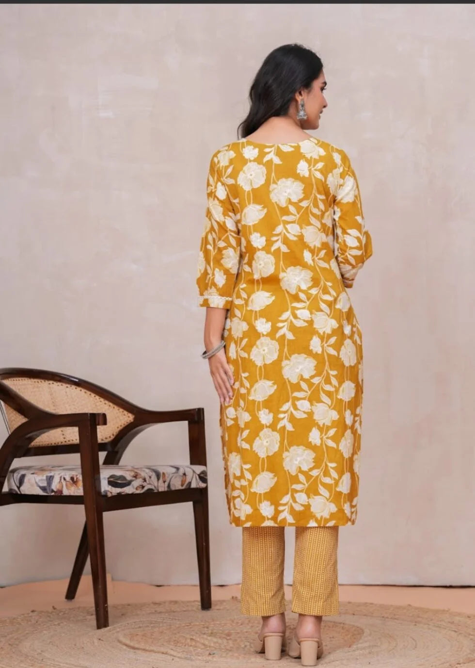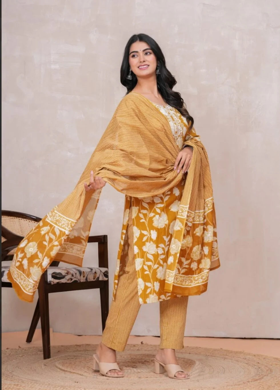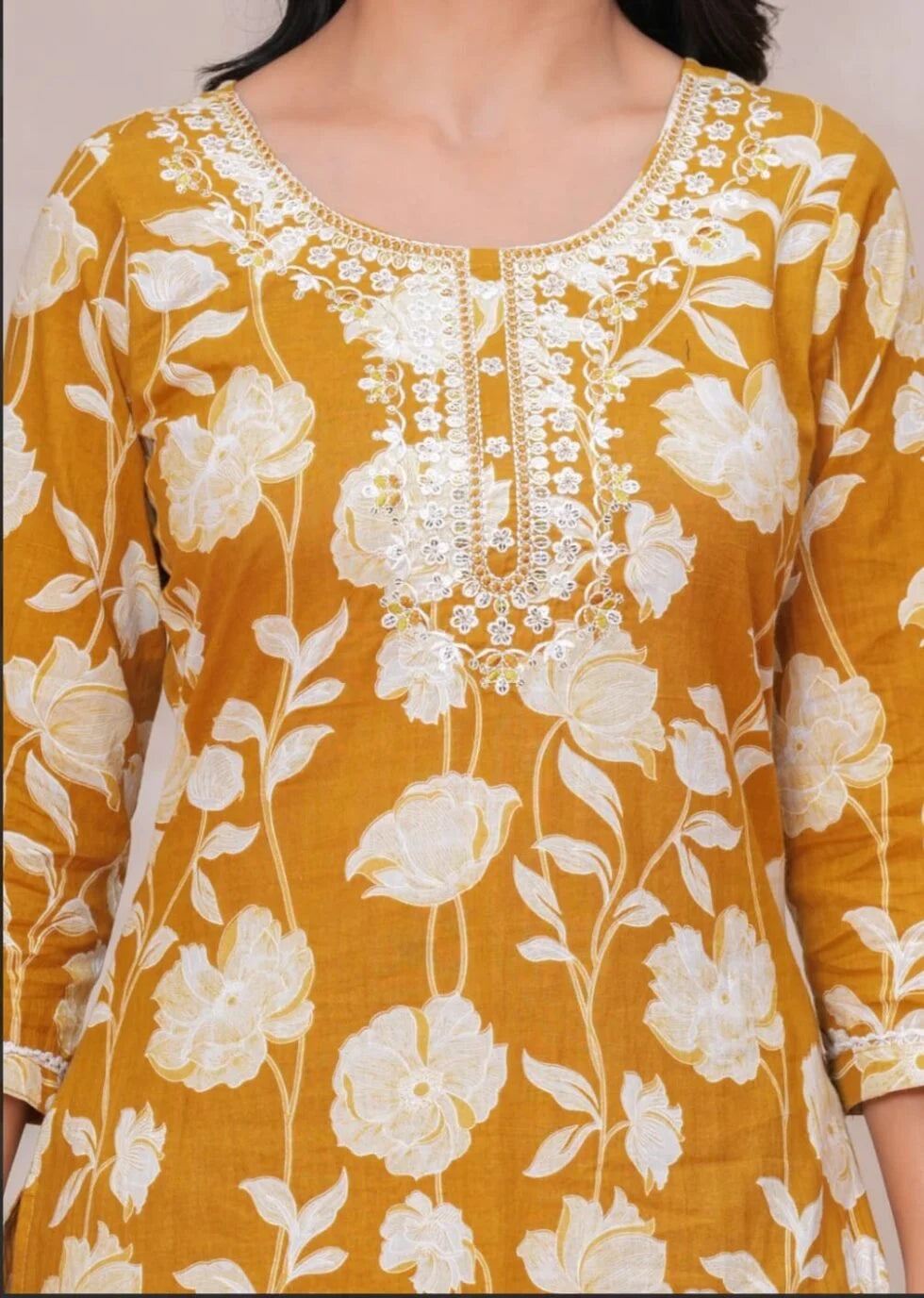 This pure cotton kurta is the perfect combination of tradition and trend. Designed with a high-quality discharge print that stays bright wash after wash, and finished with elegant embroidery work for a handcrafted feel. Soft on the skin and effortlessly stylish.