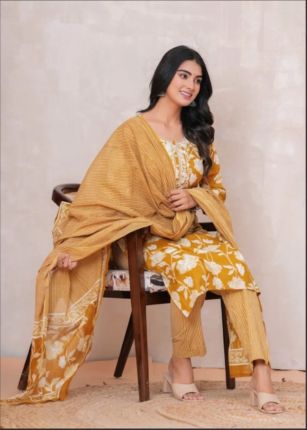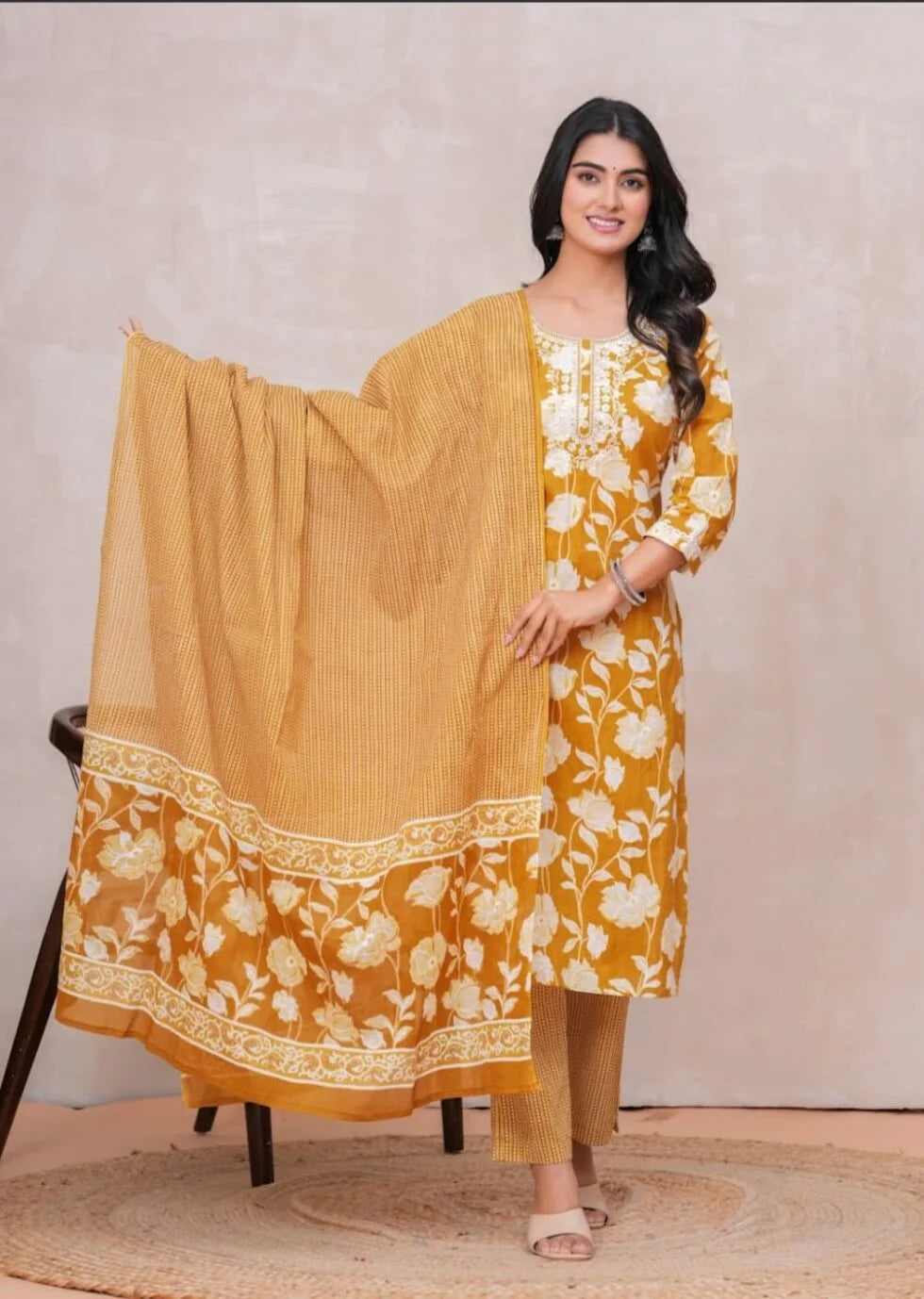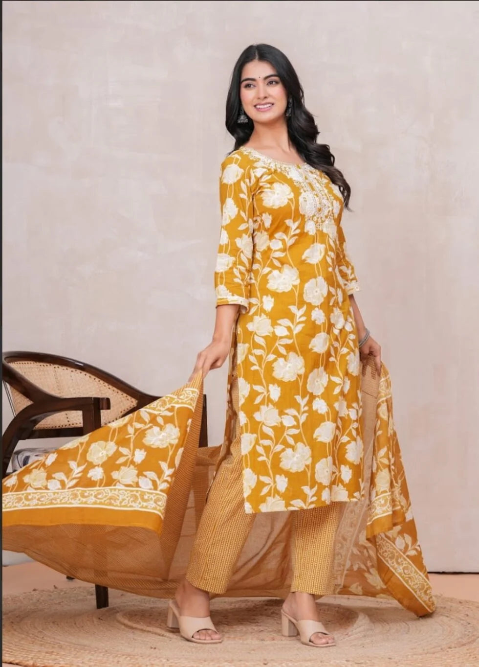 This pure cotton kurta is the perfect combination of tradition and trend. Designed with a high-quality discharge print that stays bright wash after wash, and finished with elegant embroidery work for a handcrafted feel. Soft on the skin and effortlessly stylish.
