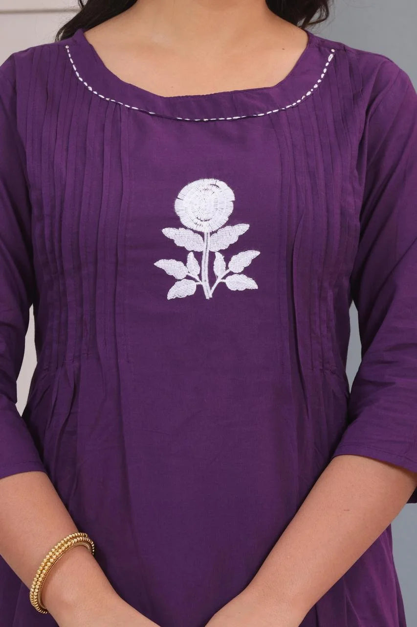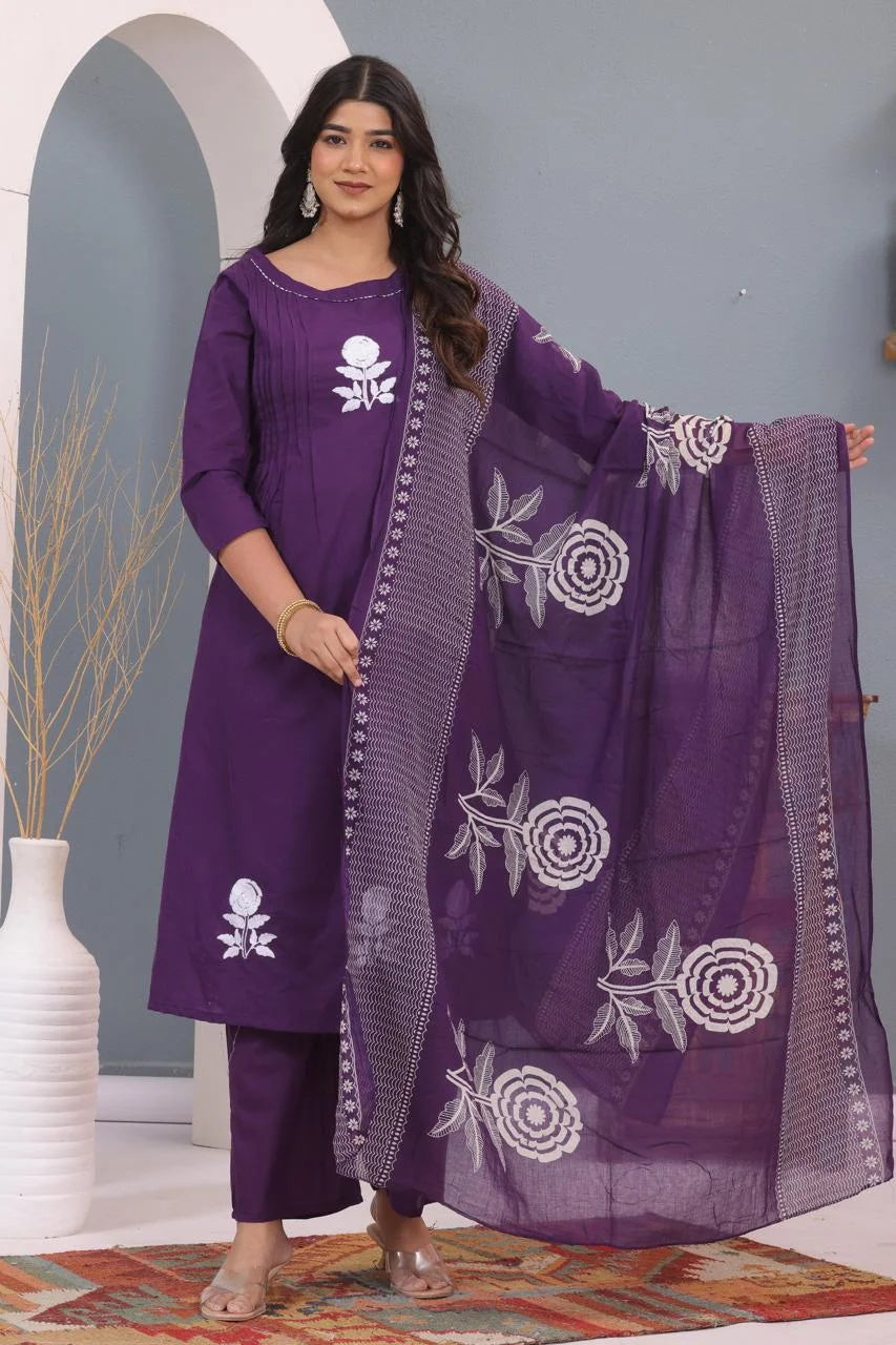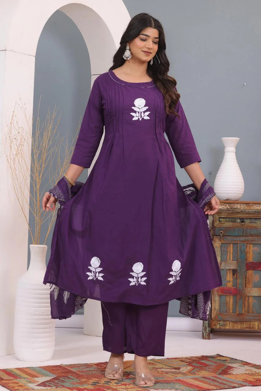 Make a subtle yet striking statement with this 3-piece A-line kurta palazzo set, crafted from 100% pure cotton. The discharge dye technique brings out vibrant, long-lasting colors, while the embroidered detailing adds a touch of traditional artistry. Ideal for women who value comfort without compromising on style.