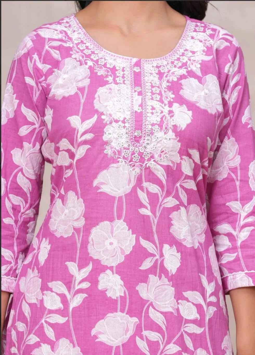 Bring charm and comfort together with this embroidered kurta in pure cotton, detailed with a subtle discharge print that gives it a timeless appeal. The breathable cotton and artistic embroidery make it a versatile choice for any day of the week.