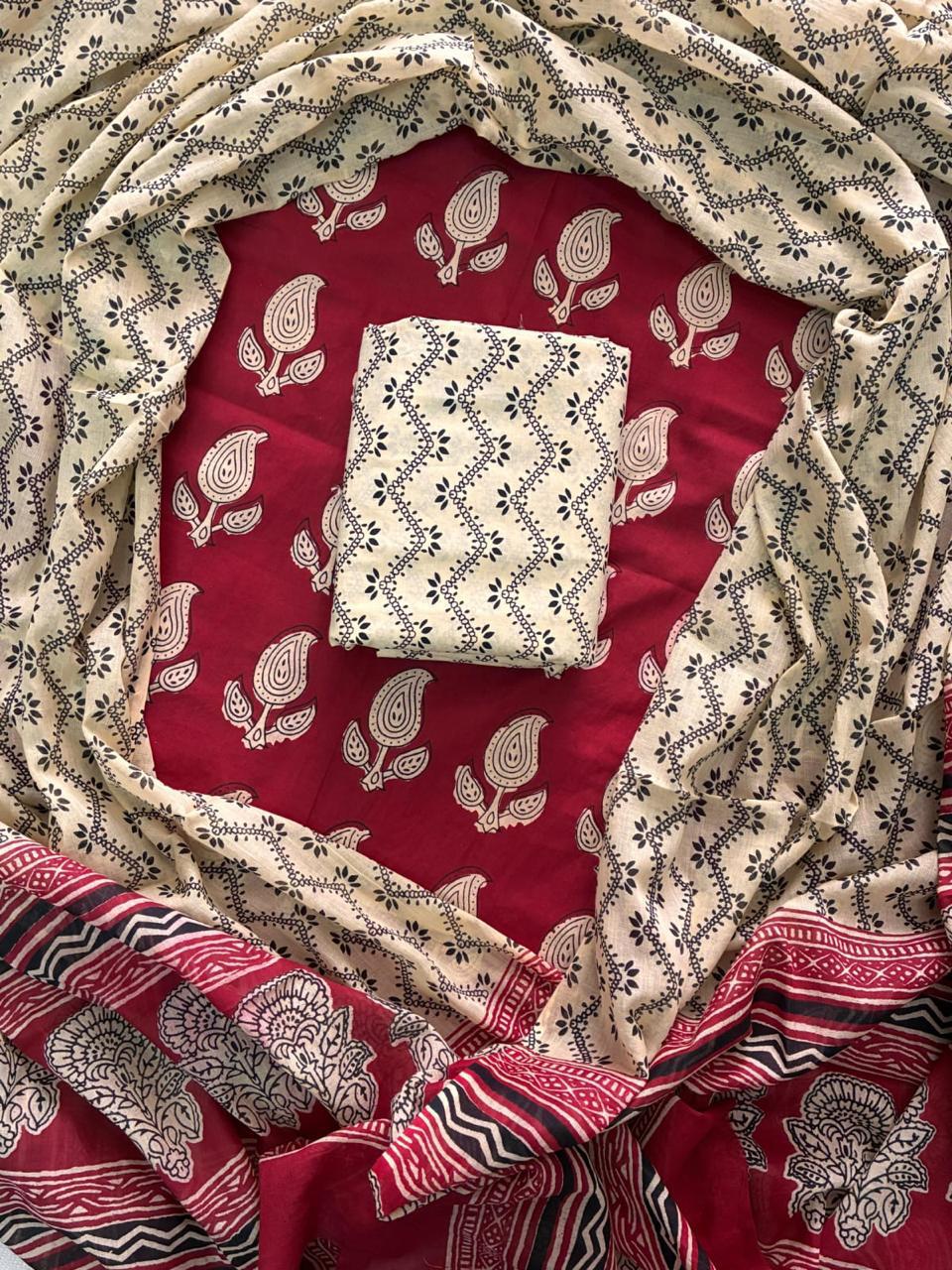 Exclusive Hand Block Printed Cotton Dress Material with Cotton Dupatta