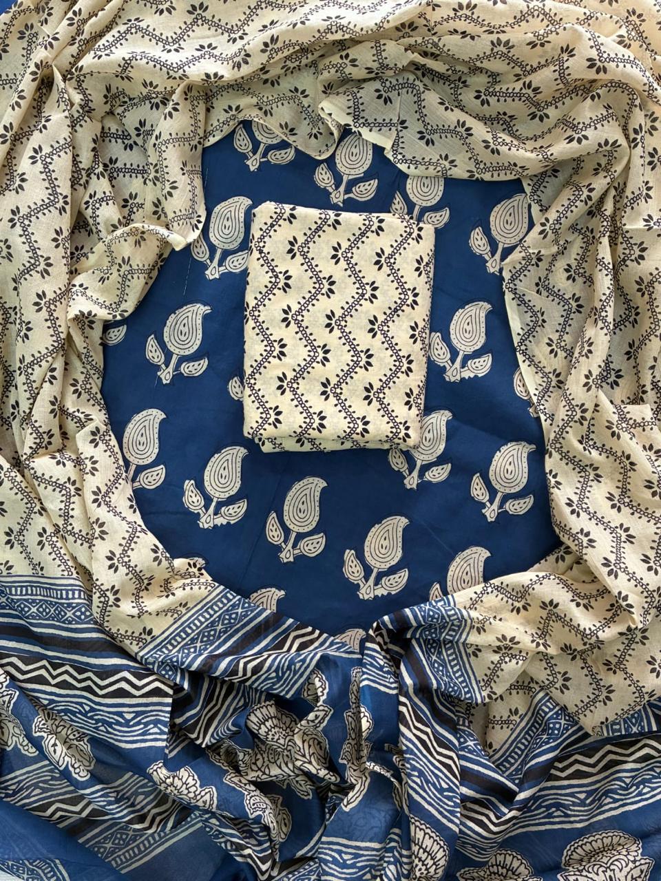 Exclusive Hand Block Printed Cotton Dress Material with Cotton Dupatta