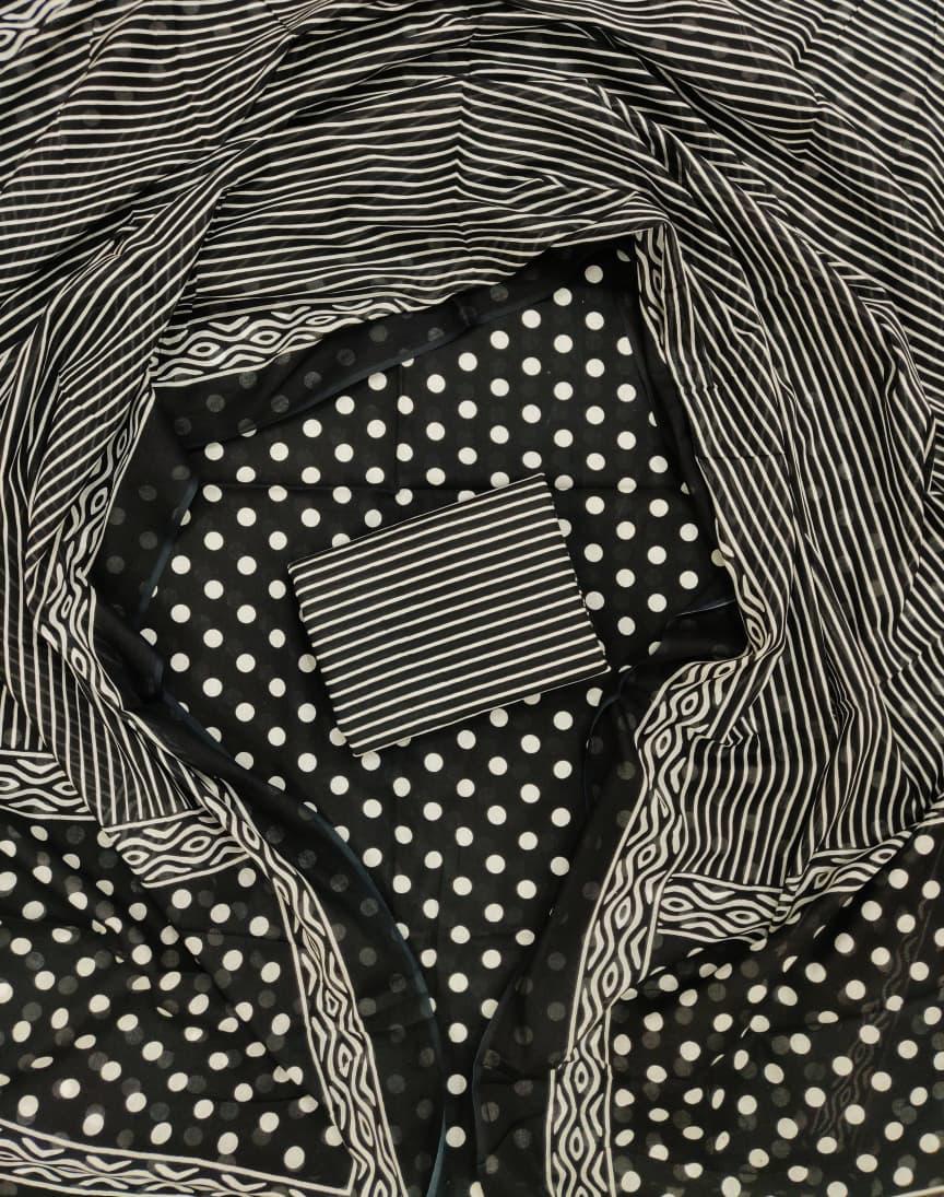 Bring home the charm of tradition with this exclusive hand block printed cotton dress material. Crafted with care, this set includes a cotton top, cotton bottom, and cotton dupatta, ensuring both comfort and elegance.