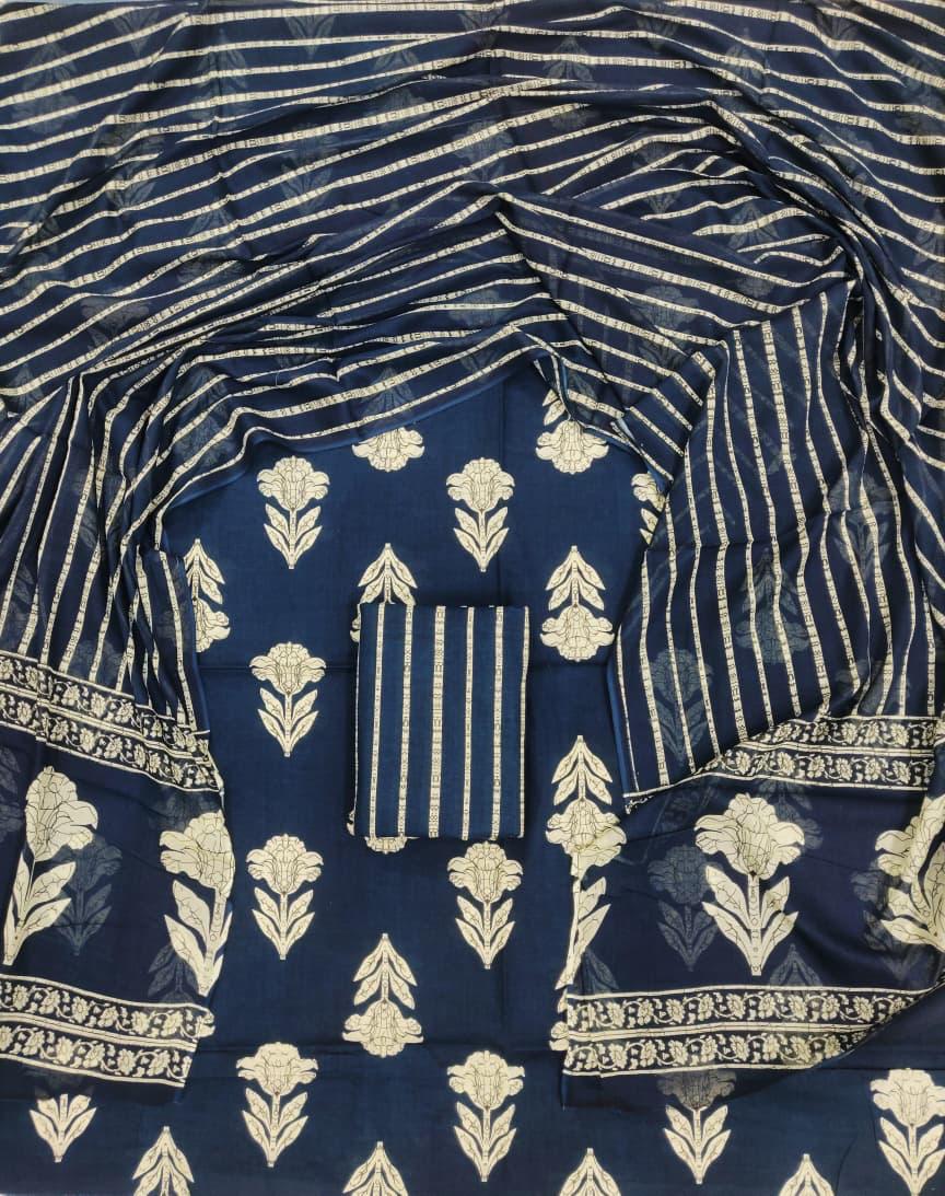 Exclusive Hand Block Printed Cotton Dress Material with Cotton Dupatta