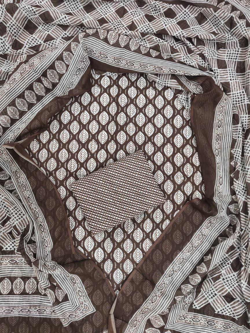 Exclusive Hand Block Printed Cotton Dress Material with Cotton Dupatta
