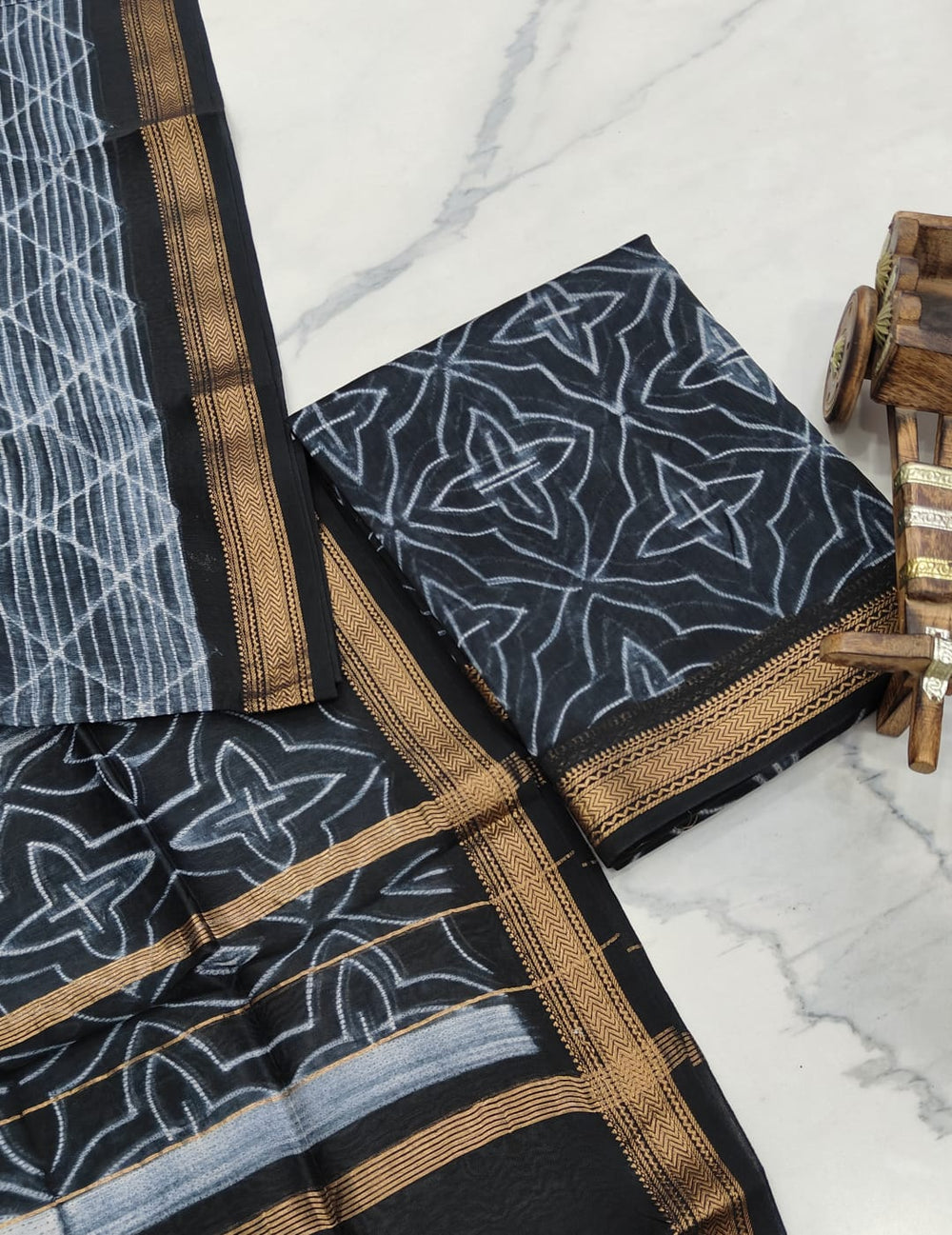 Exclusive Maheshwari Silk Suit | Hand-Stitched Shibori & Ajrak Dabu Print
