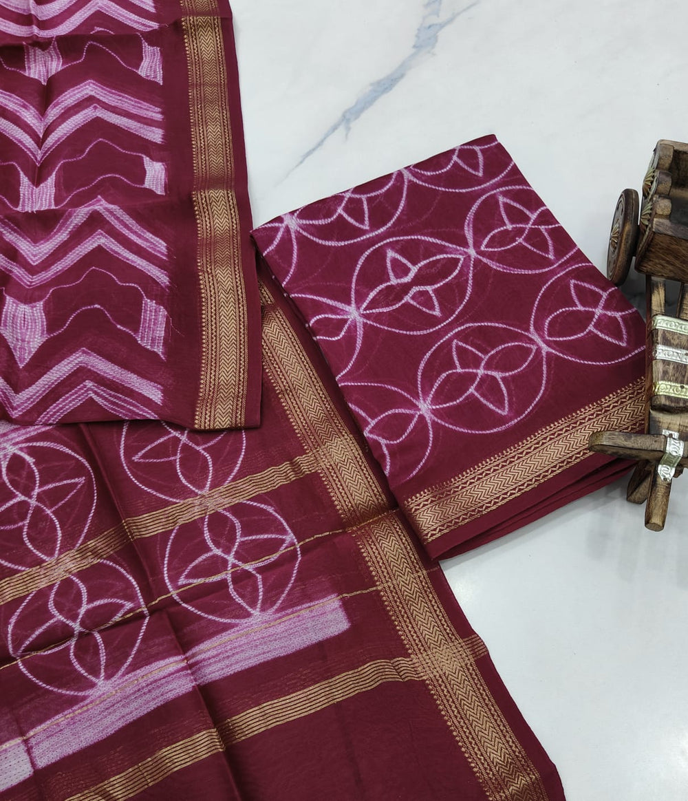 Exclusive Maheshwari Silk Suit | Hand-Stitched Shibori & Ajrak Dabu Print