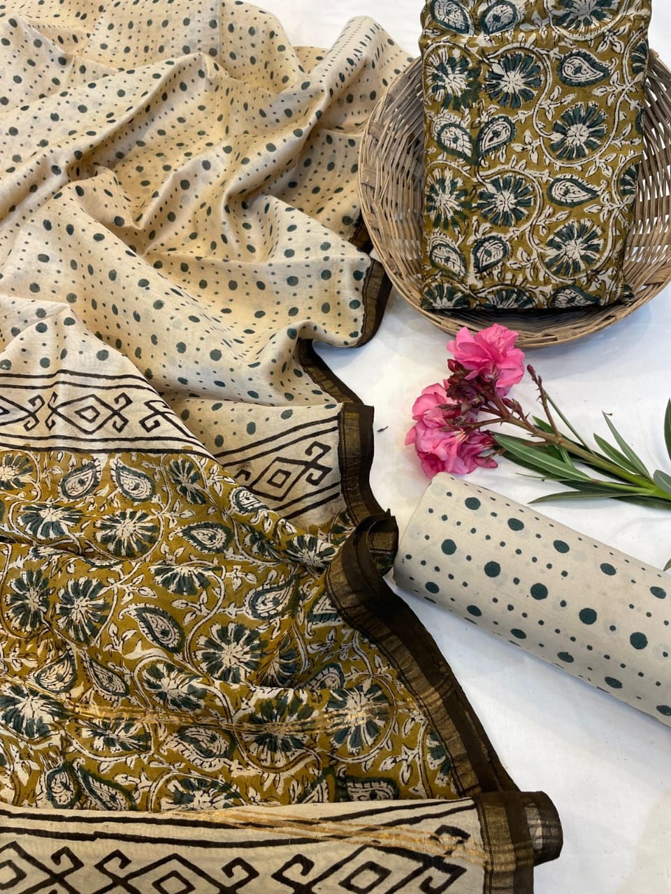 Exclusive Pure Chanderi Silk Suits with Dupatta & Cotton Bottom