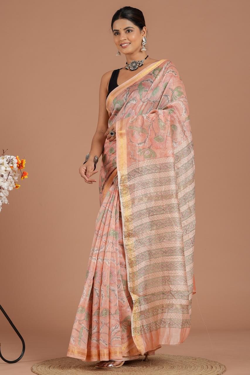 Maheshwari Silk Saree โ€“ Elegant Bagru Print | With Blouse Piece
