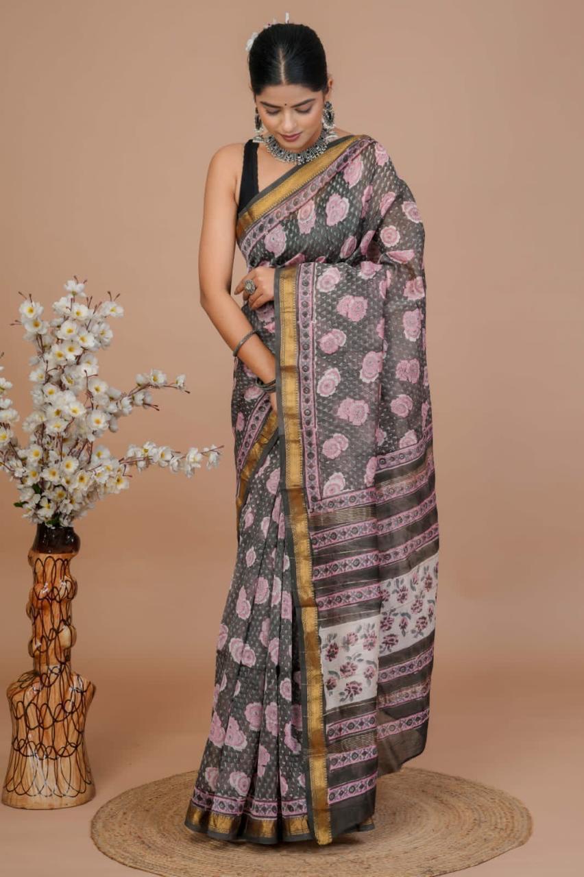 Maheshwari Silk Saree โ€“ Elegant Bagru Print | With Blouse Piece