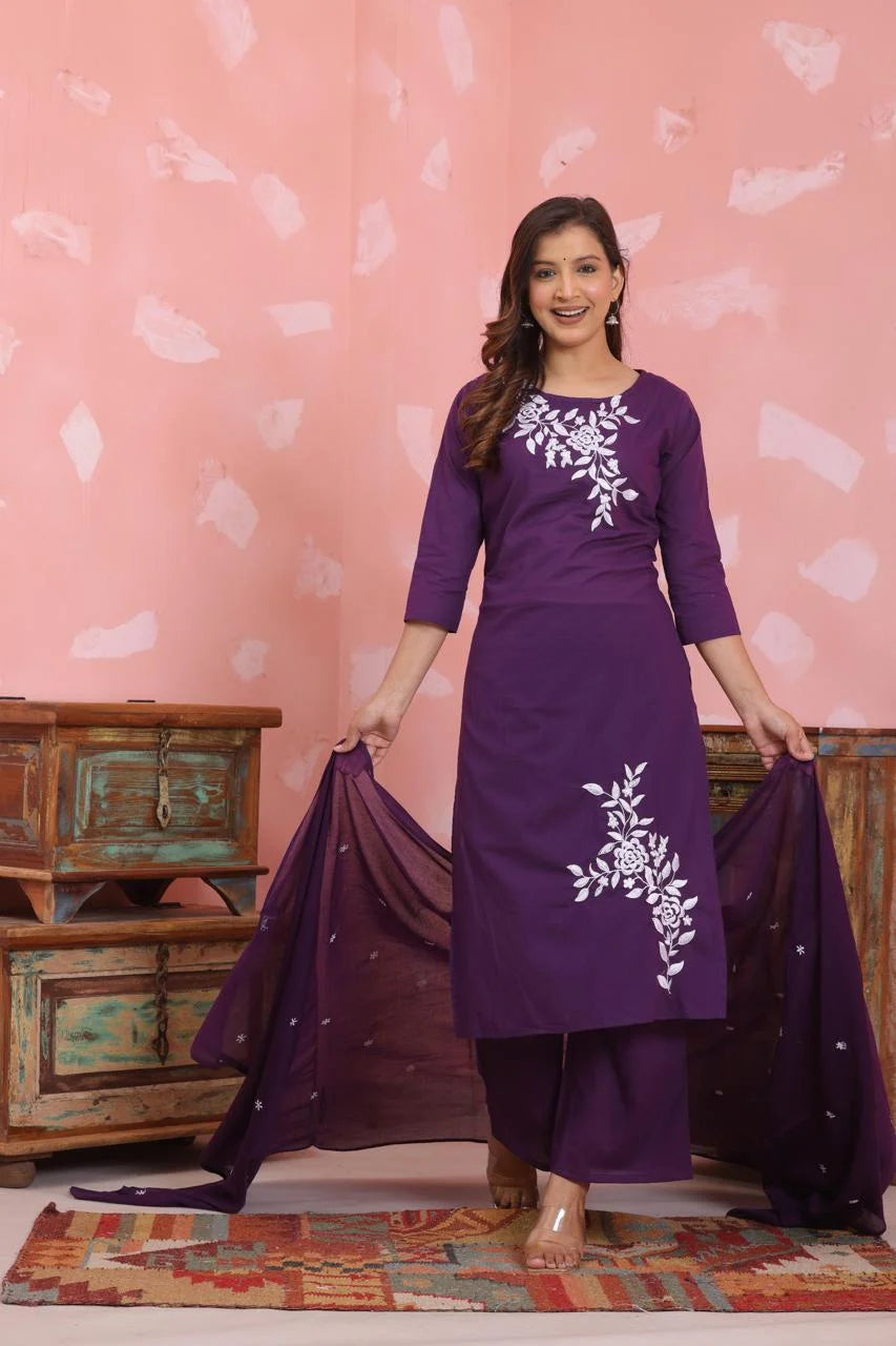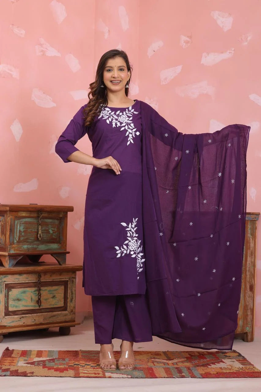 Step into comfort and elegance with our 3-piece Kurta Palazzo Set, crafted from premium pure cotton (60×60 weave) for all-day breathability and style. This beautifully designed ensemble features: